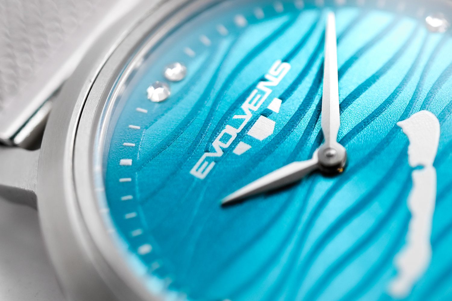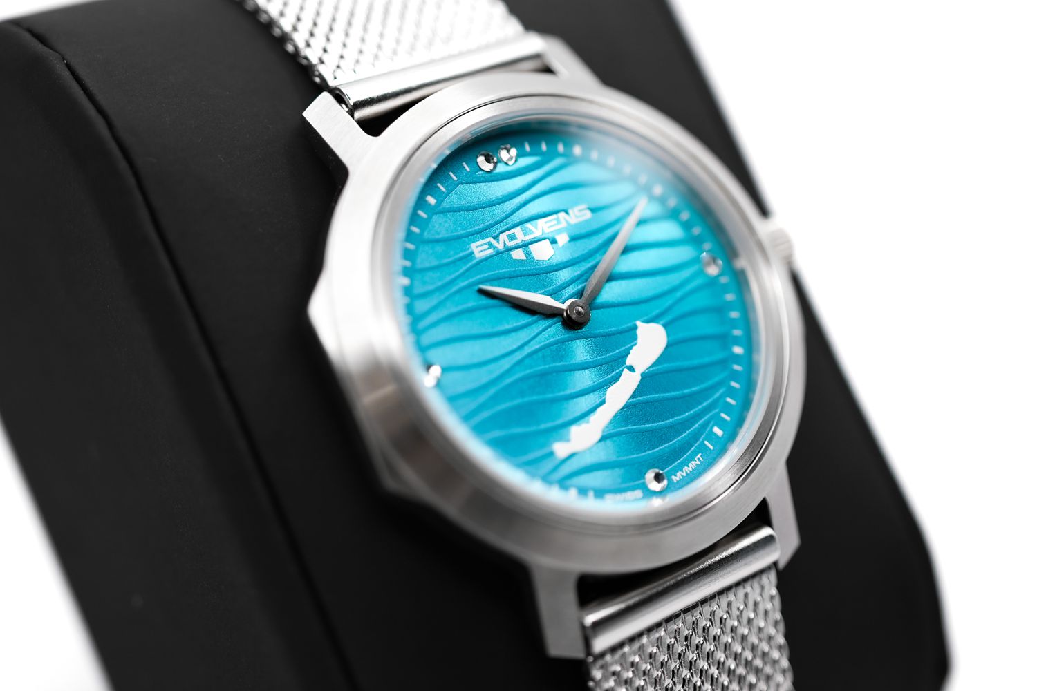 The Evolvens-Balaton watches are part of a special collection. The AZURE and SILVER models represent the blue-green shades of Lake Balaton, and the waves come to life thanks to the sunburst-finished dial. With sapphire crystal, brushed stainless steel case, and as always with Evolvens, you can order it personalized with a name!