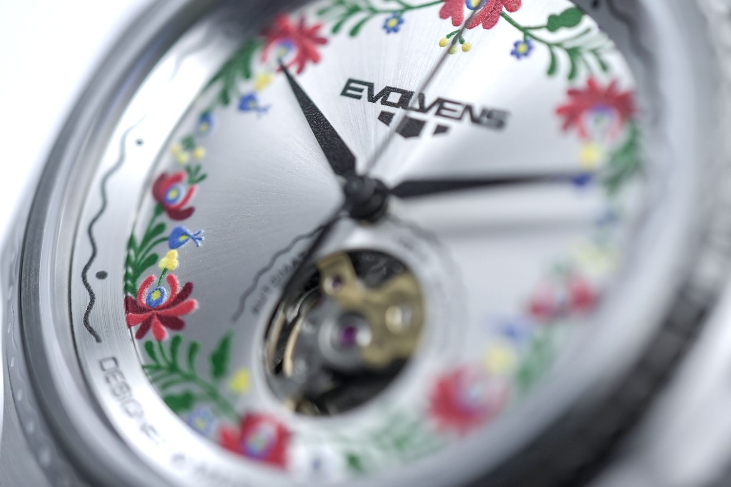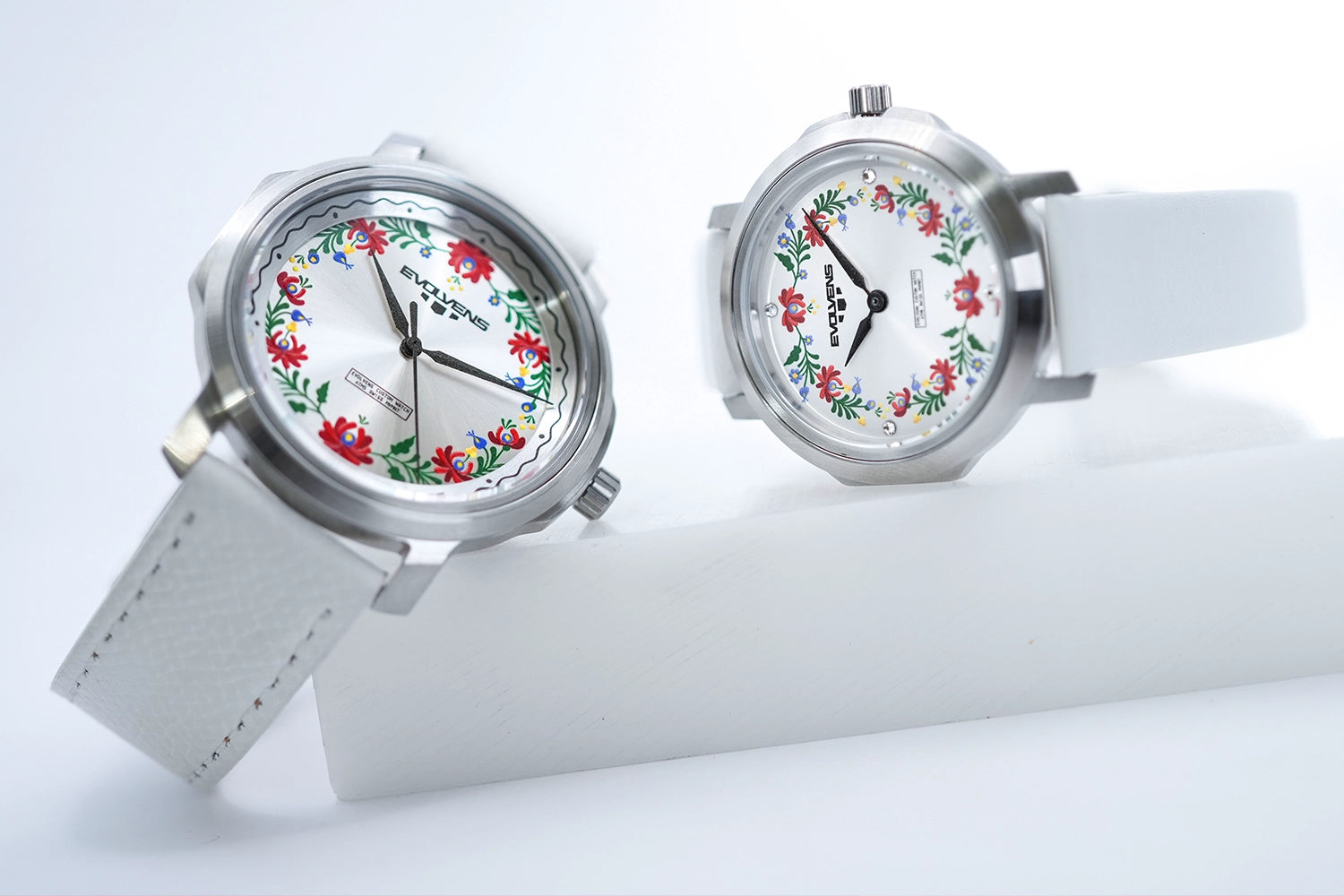 Egy igazán különleges, matyó témakörű karóra, mely tükrüzi a híres hazai minta fő motívumait és az Evolvens® órák stílusjegyeit. Rendeld meg egyedi számlap-felirattal.